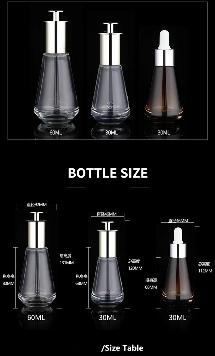 - This is our collection of press dropper Bottle, which are mainly used for packaging liquids such as essential oils, serums, hair oils, perfumes, etc. We can customize different colors on the transparent bottles to make them look more beautiful.
