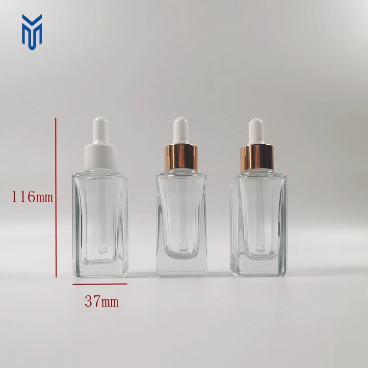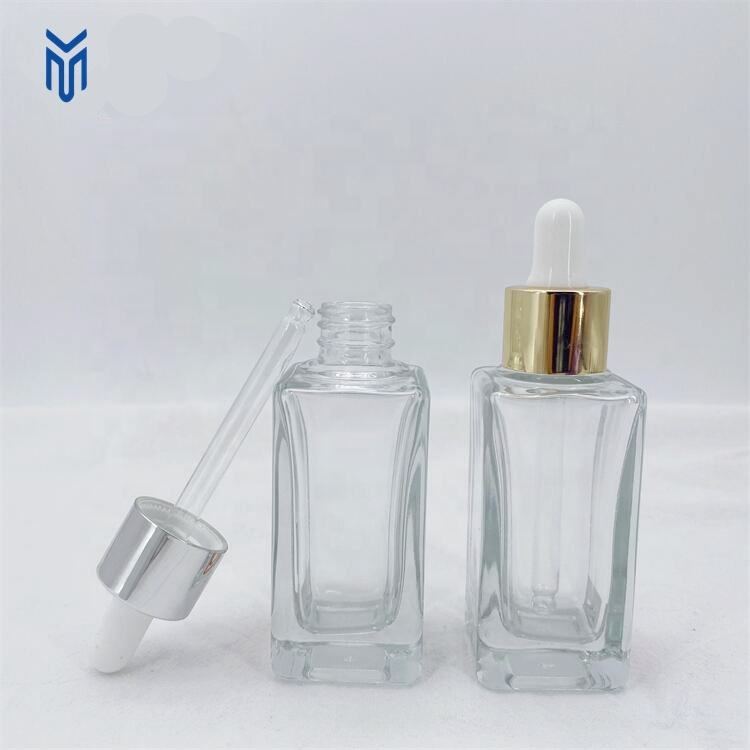 Luxury 40ml Thick Bottom square Foundation Bottle Essential Oil serum Glass Bottle Essence Dropper Bottle
