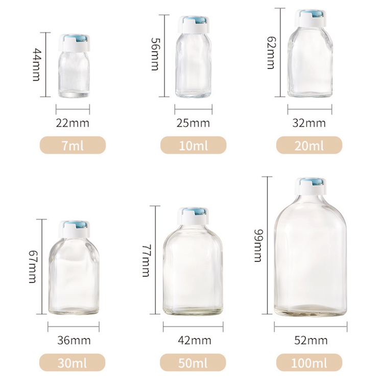 Wholesale 10ml 20ml 30ml 50ml 100ml Transparent Pharmaceutical Medicine Glass Bottle Injection Glass Vial for Serum