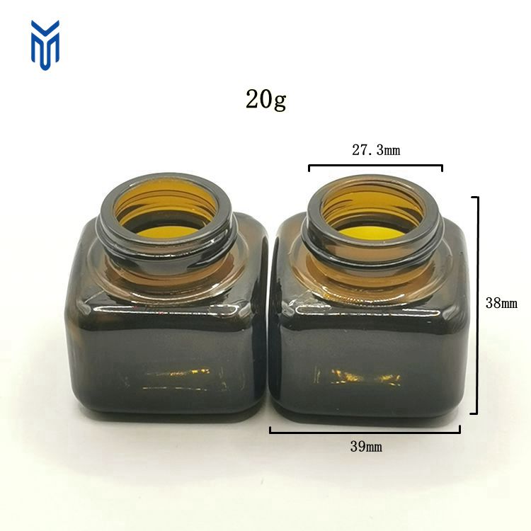 Wholesale 20g Amber Glass Cosmetic Cream Container square Eye Cream Jar with Metal Lid