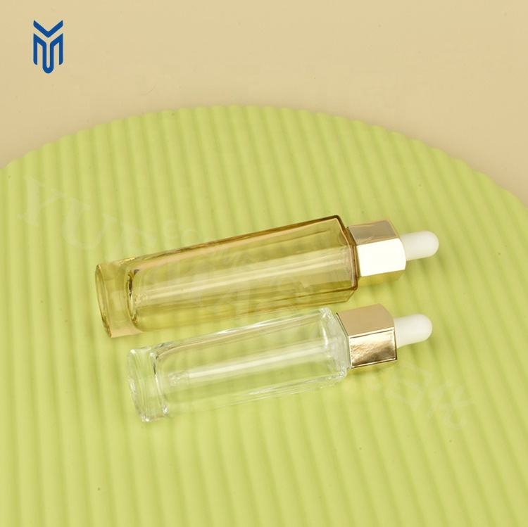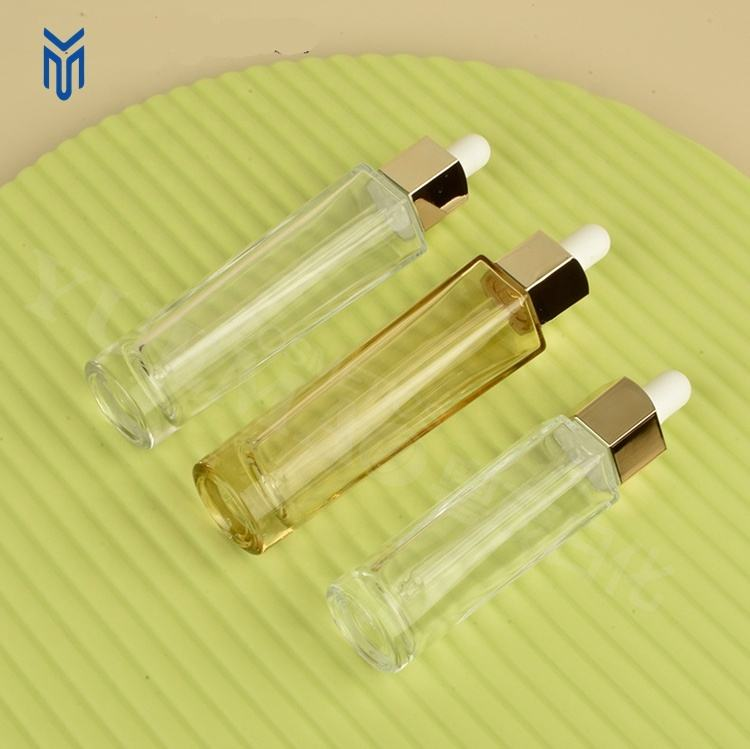 - This is our collection of Hexagon Dropper Bottle, which are mainly used for packaging liquids such as essential oils, serums, hair oils, perfumes, etc. We can customize different colors on the transparent bottles to make them look more beautiful.
