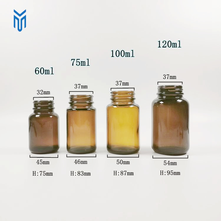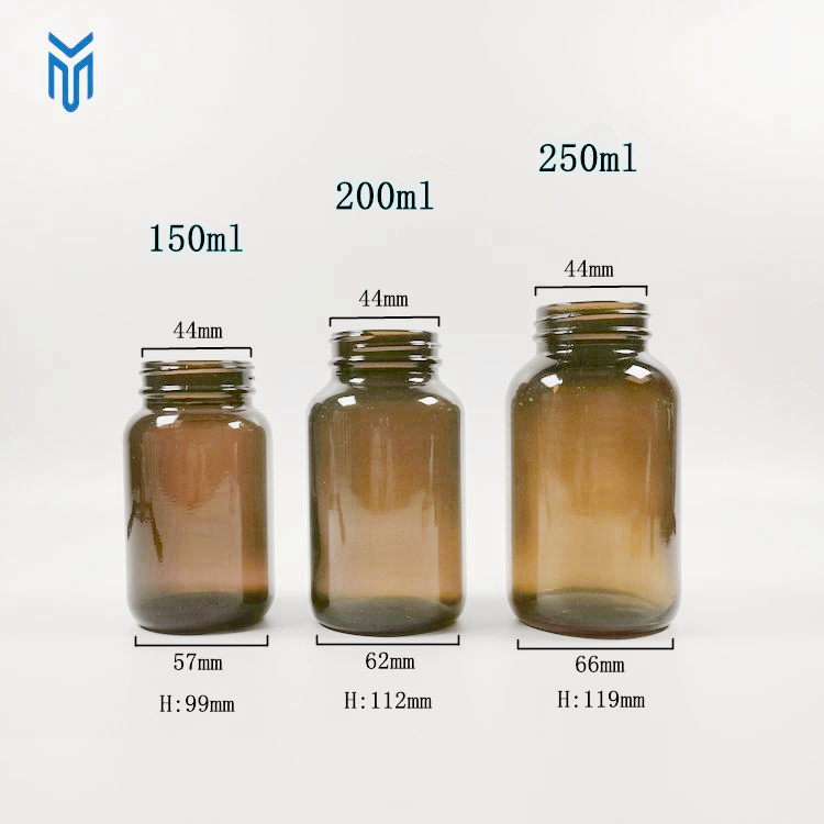 Wholesale 60ml 75ml 100ml 120ml 150ml 200ml 250ml Wide Mouth Amber Glass Vitamin Capsule Bottles Capsule Pill Bottle with Gold Plastic Screw Lid